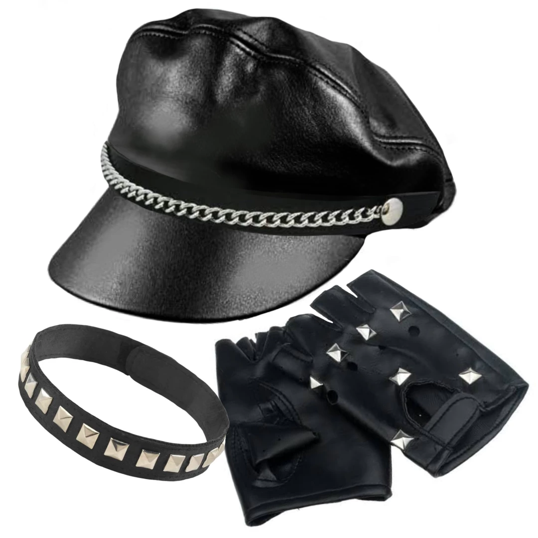 Born to be wild! Our Biker Costume Kit features a wicked set of biker accessories to burn up the highway with. One size fits most teens and adults.