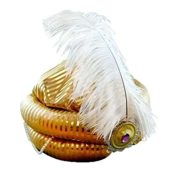 Gold Prince Turban w/attached Feathers & Jewels Size: 60cm