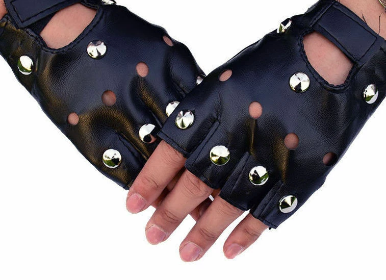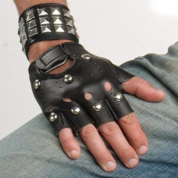 Studded Black Fingerless Gloves