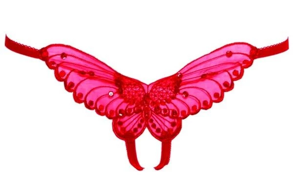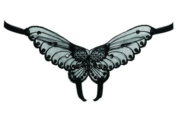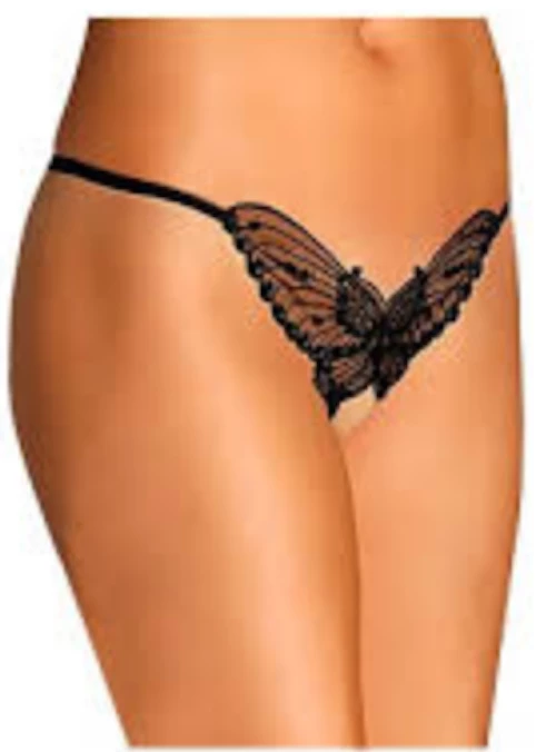 Butterfly Crotchless G String Plus Size This is a lovely stylish open front Crotchless G-String Panty. It is made by Leg Avenue and is a one size fits all sizes 6 to 12 sizes.