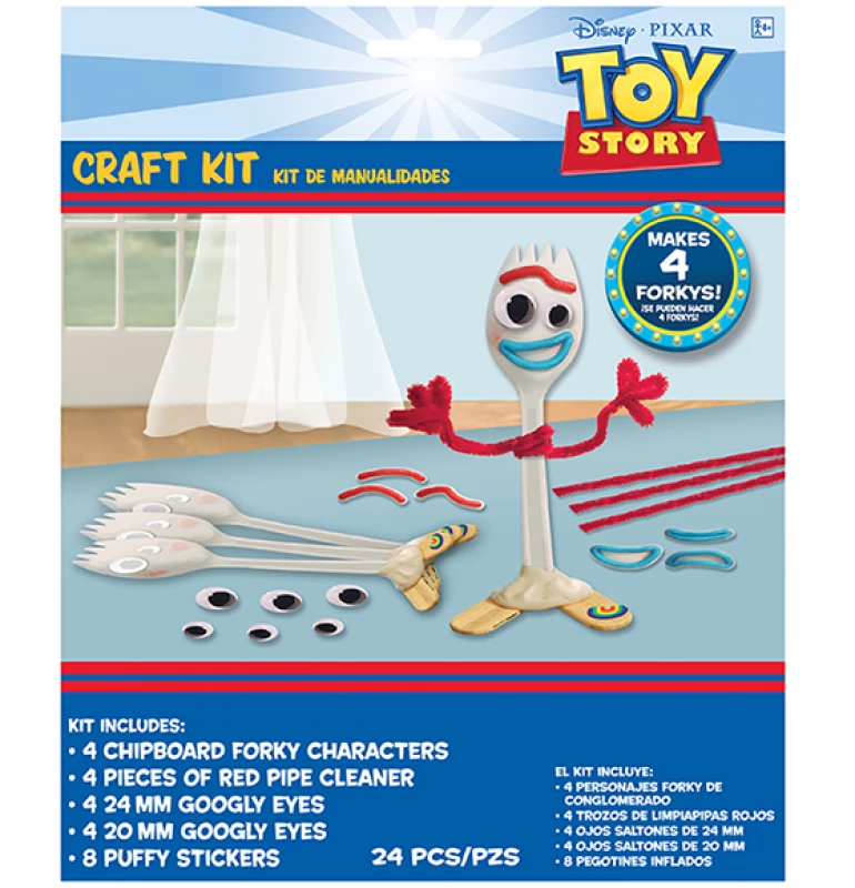 Friends and family at your little one’s Toy Story party can go home with their own Forky figure when they make it with a Toy Story 4 Craft Kit for 4! This kit includes chipboard Forky characters, red pipe cleaner, googly eyes, and puffy stickers. Set up an arts and craft table with this kit and the kids can create Forky figures that they can take home!