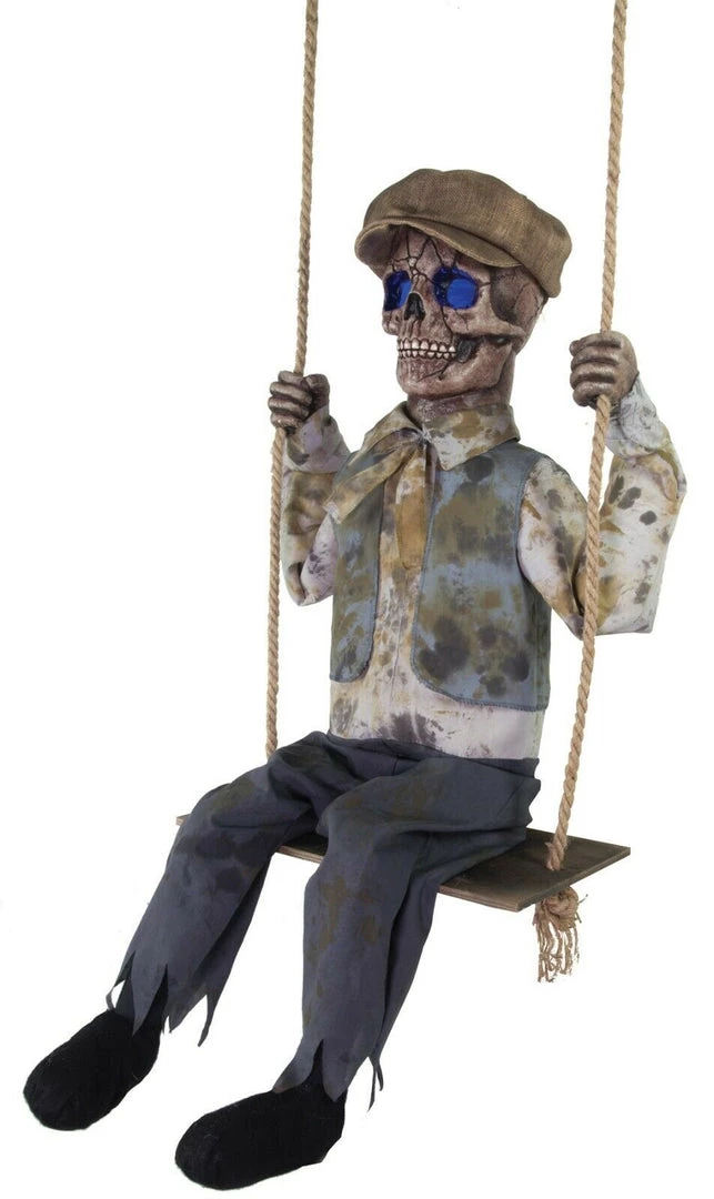 to your house with the Swinging Skeletal Boy around! This creepy prop features